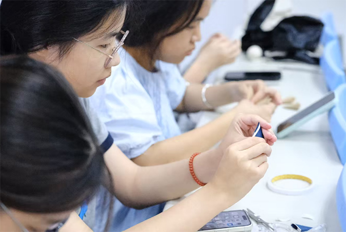參與活動的同學的臉上都洋溢著對非遺文化喜愛與欣賞的笑容,在制作繡球與花草燈時出現不理解的制作步驟,同學們也會相互問詢,互幫互助,增強班級凝聚力,展現了青年學子的創造力與團隊合作精神,也激發了同學們的民族自豪感和愛國情懷,更加展現了非遺文化在新時代的精神動力。