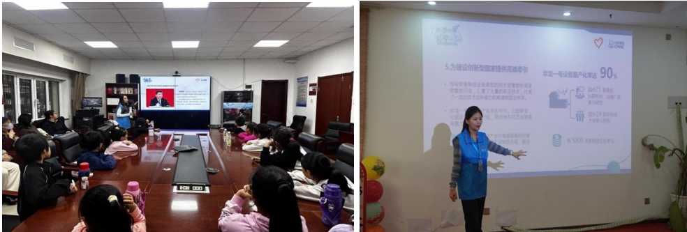 走進天津市第五十五中學的思想講堂,宣講團以核工業(yè)精神里的青春力量為核心開展宣講,讓歷史敘事與青年使命深度聯(lián)結。成員們用平實語言梳理我國核工業(yè)的發(fā)展歷程,展示中國第一塊鈾礦石圖片,講述科研人員隱姓埋名、用算盤攻堅的故事,讓同學們直觀地感受到“自力更生、艱苦奮斗”的精神內(nèi)核,理解這背后是一代代人用青春扛起的國家責任。為讓協(xié)同精神更易感知,宣講團成員現(xiàn)場組織接力拼接華龍一號的活動。團隊成員將華龍一號核電站模型樂高組件依次傳遞給各小組,每組負責拼搭模型的一個關鍵部件。組裝過程中,宣講團成員同步講解各部件的真實功能,以及其協(xié)同研發(fā)的背景,讓同學們在接力配合中體會到,像華龍一號這樣的大國重器,正是無數(shù)人接力攻堅、分工協(xié)作的成果,就像此刻大家共同完成模型一樣,每一環(huán)都不可或缺。